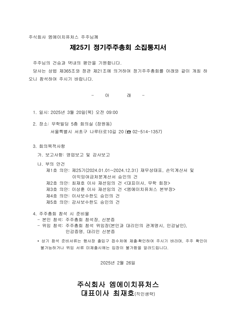 제25기 정기주주총회 소집통지서